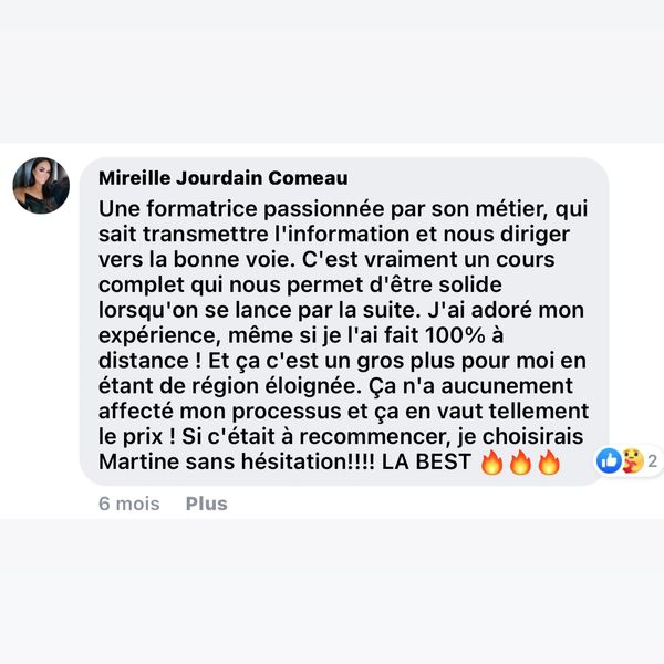 Il est aussi possible d’avoir du coaching en privé pour optimiser vos techniques de marketing sur les réseaux sociaux pour être aligné à vos clientes idéales, augmenter votre visibilité et faire de vos média sociaux votre meilleur allié pour augmenter vos clients et votre impact dans votre industrie.